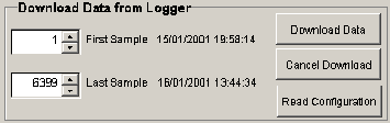 Some loggers will only allow you to download all available data. In this case the First Sample and Last Sample Number, Date and Time will be displayed but can not be changed. These loggers do not allow a “Cancel Download” once a download has been started so the only options available are “Download Data” and “Read Configuration”