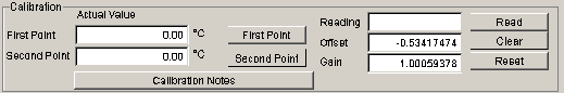 This area is used to calibrate the connected probe. Some probes do not need calibration, some need one point, some need two point calibration. This area will change depending on the type needed.