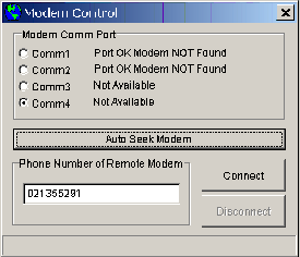 - Progress of the connection process will be displayed on the status bar of the Modem Control Dialog Box.