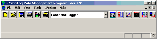 The OmniLog main screen contains a TITLE bar that displays a version number of the Omnilog application, a MENU bar for accessing all Omnilog functions, a TOOLBAR for accessing commonly used functions and a STATUS bar for reporting the status of connected loggers or weather stations and the progress of calibration, configuration, download, statistical calculation, graph preparation and export operations.