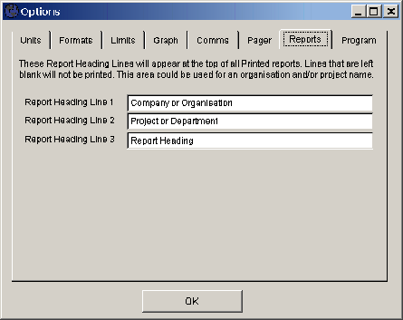 Used to set up the headings that will be displayed when reports are displayed or printed.
