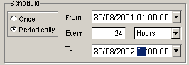 - Under Schedule Select Periodically, Every 24 hours, starting from 1am tomorrow to 1am in a years time