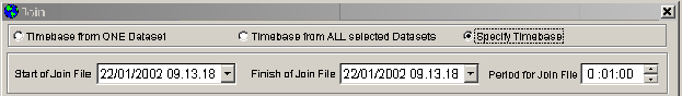 The time base (Start DateTime, Stop DateTime and Sample Period) of the new joined dataset can be set in three different ways:
