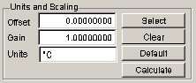 Sets the offset, gain and units to 0,1 and The S.I. units.