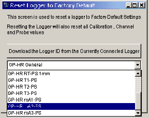 The GP-HR General Purpose Logger has a factory default for each of the available standard probesets.