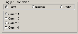 - Under Logger Connection Select "Modem" and the required Comm port for the computers modem and the phone number of the remote modem